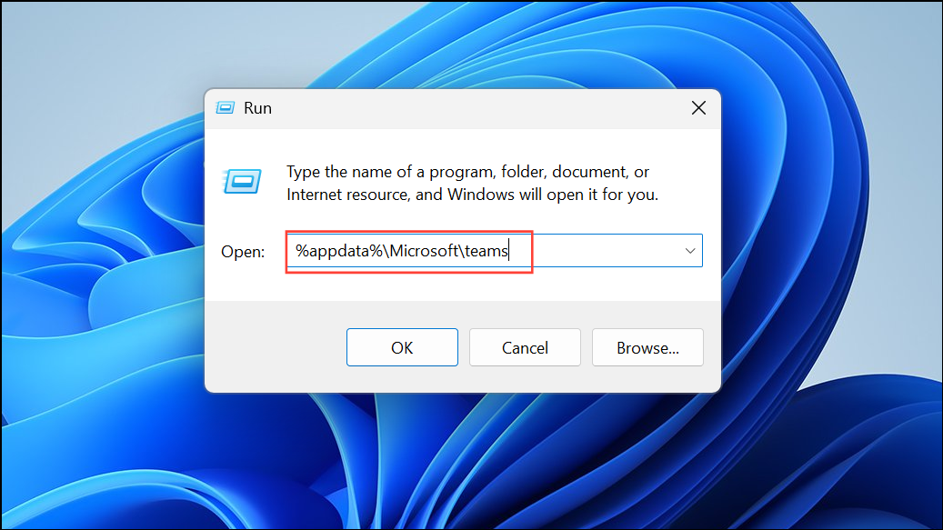 Step 1 (Windows): Press Win + R, type %appdata%\Microsoft\teams, and press Enter. Select all files in the folder and delete them. This removes temporary files that may interfere with proper app function.