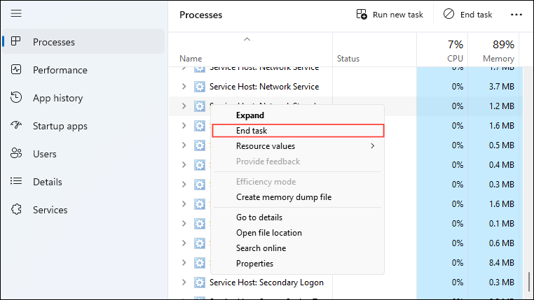 - When the Task Manager opens, right-click on any Discord-related programs and click on 'End Task'. Relaunch Discord and check whether it is running properly now. If it isn't, restart your computer and try again.