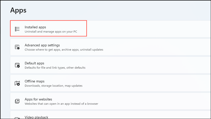 - Then click on 'Installed apps' on the next page.