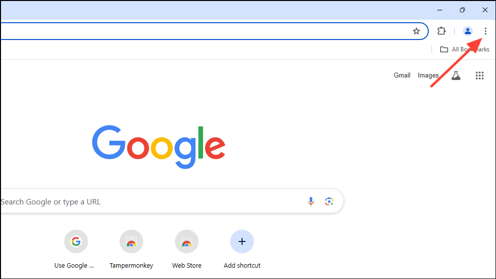 - Open Chrome and click on the three dots on the top right.