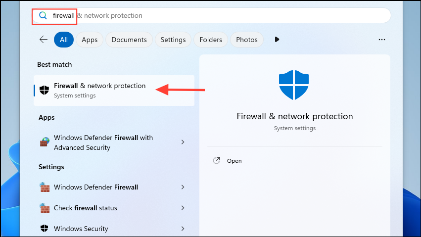 firewalland click on 'Firewall and network protection'.