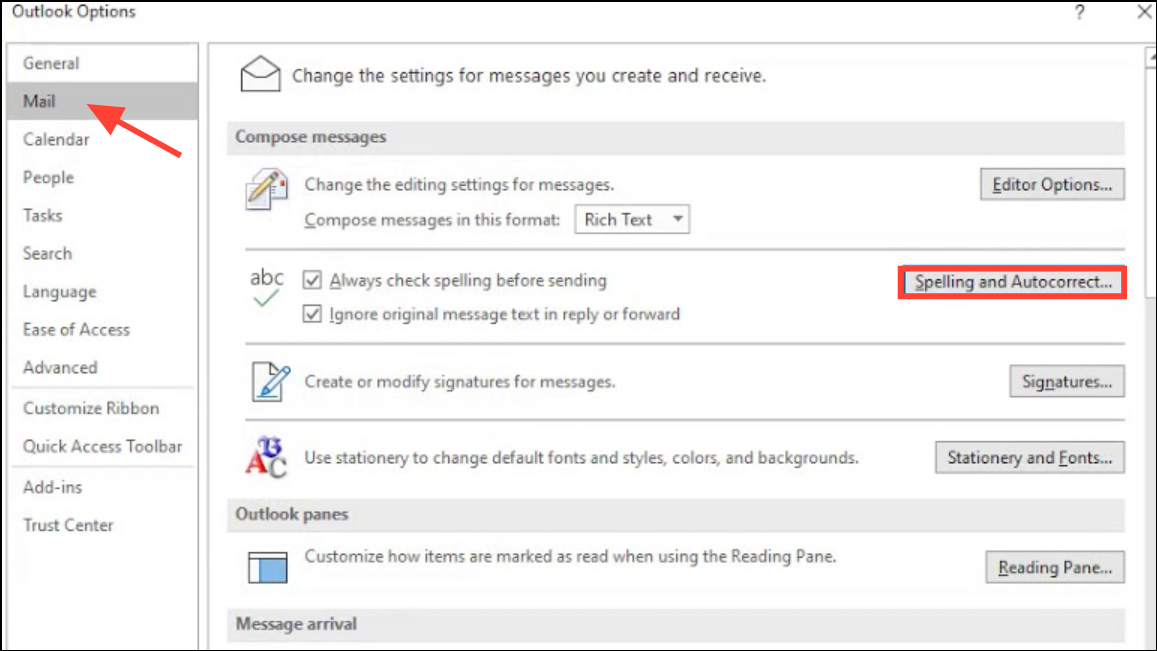 Step 1: Open Outlook and access the custom dictionary settings. On Windows, go to File > Options > Mail > Spelling and Autocorrect > Proofing. On classic Outlook for Mac, navigate to Outlook > Preferences > Spelling and Grammar > Dictionaries.