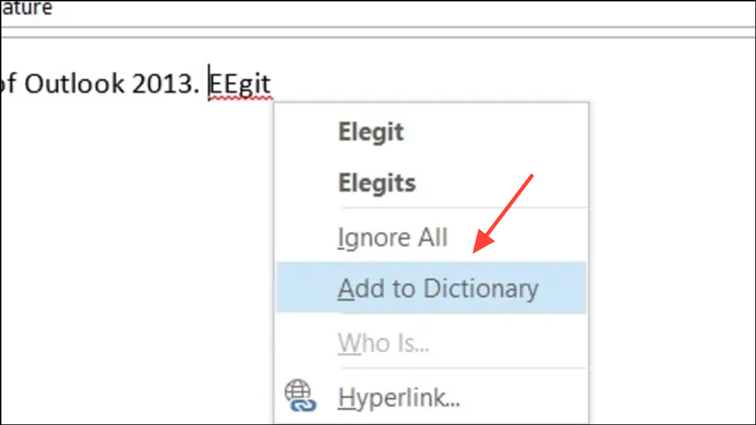 Step 3: Return to Outlook and check if the word is still flagged. In most cases, Outlook will now accept the word, but there are known limitations where Outlook may not fully respect the system dictionary. Microsoft is tracking this inconsistency and may address it in future updates.