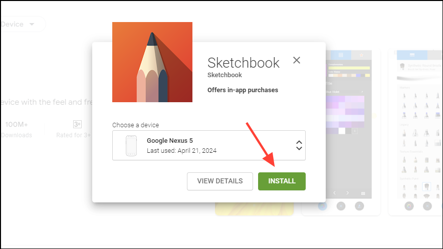 - A pop-up will appear where you can choose the device where you want to install the app. Use the arrows to change the device. Once you've selected it, click on the 'Install' button.
