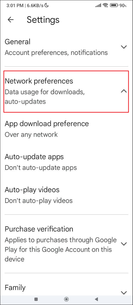 Fix 2: Change Google Play network preference settings
