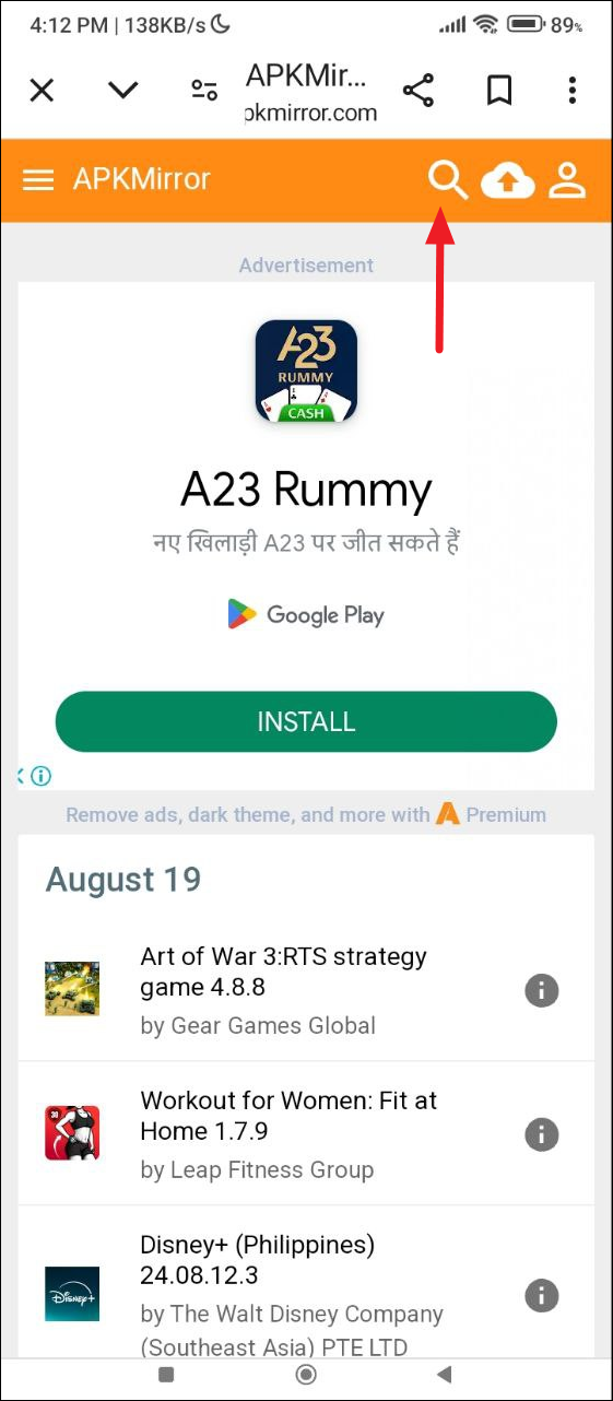 - Visit a third-party website that lets you download APKs, such as APKMirror.