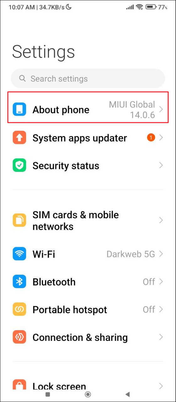 - Open the Settings app and tap on 'About Phone' or 'System'.