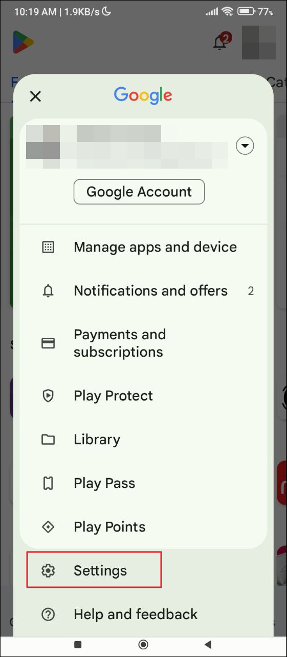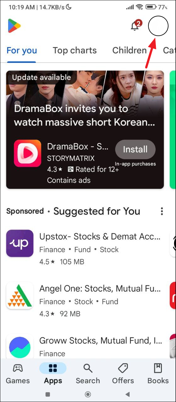 - Open the Play Store and tap on your account icon on the top right.