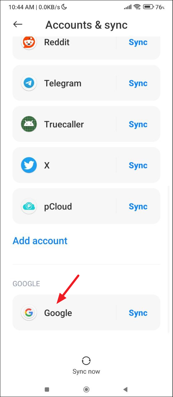 - Next, tap on 'Google'.