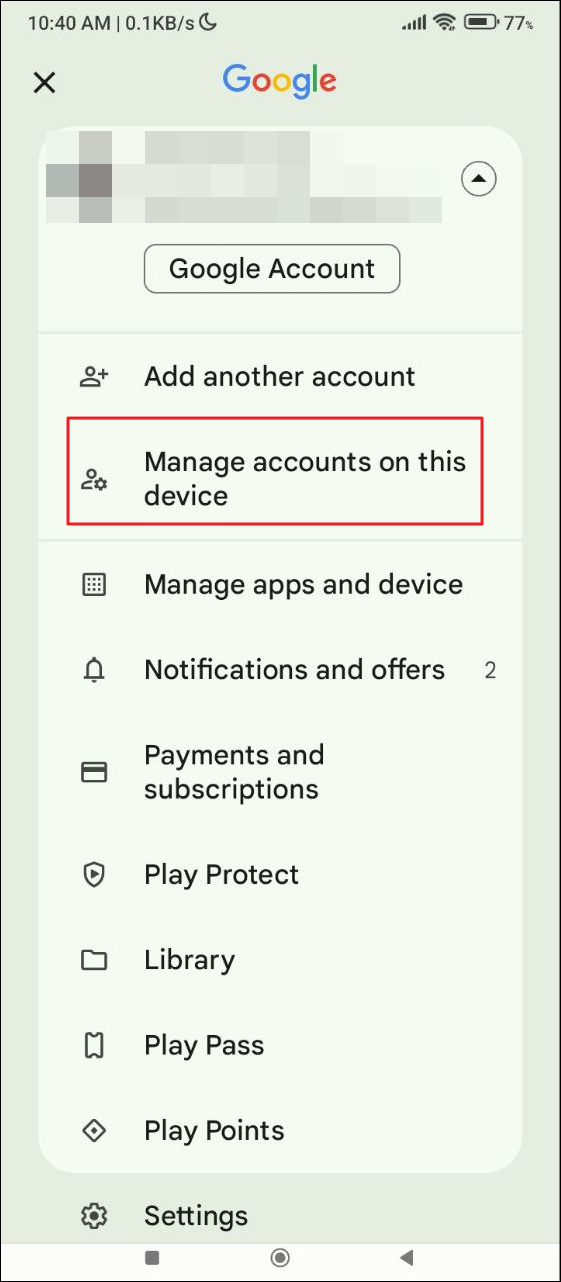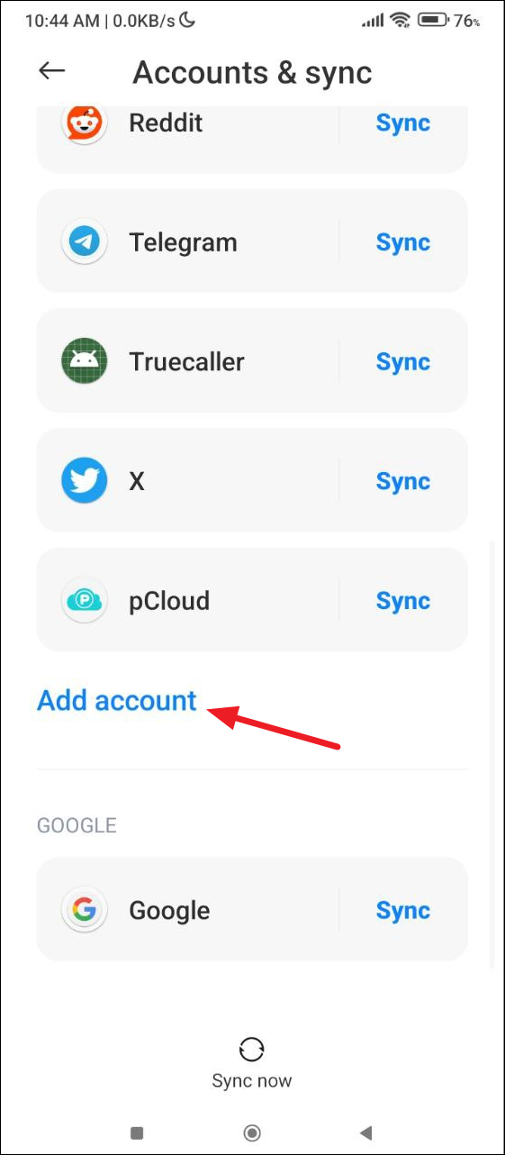 - Then tap on 'Add account' and follow the steps to add a different Google account.