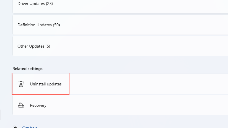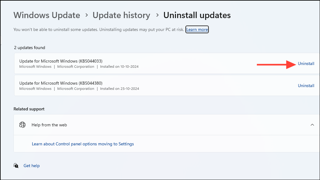 - Select the most recent update (e.g., KB5034204) and click Uninstall.