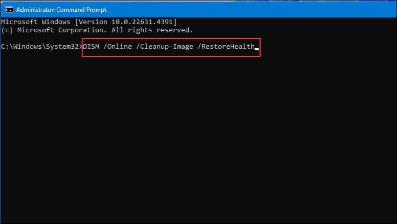 DISM /Online /Cleanup-Image /RestoreHealthand press Enter.