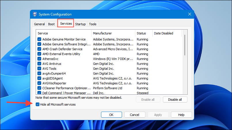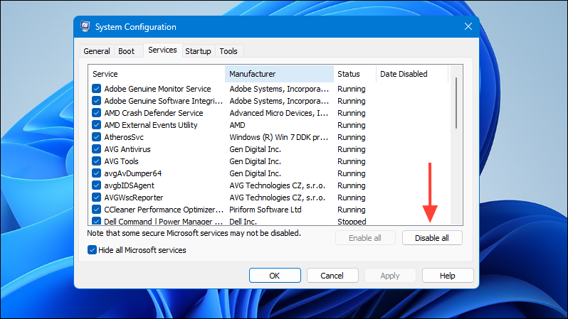 A clean boot starts Windows with a minimal set of drivers and startup programs, which can help eliminate software conflicts.