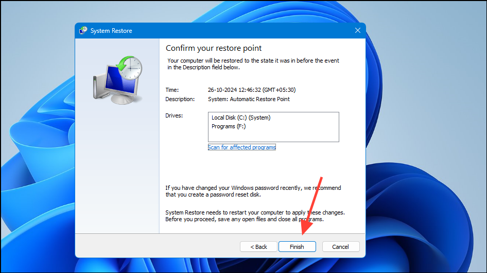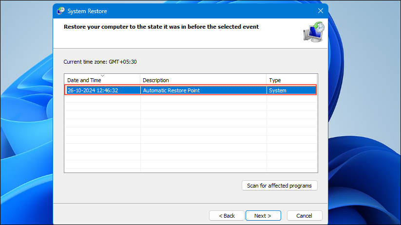 Restoring your system to an earlier point in time can undo recent changes that may have caused the error.