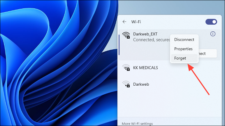 - This will show you all available networks. Right-click on the one you want to reset and click on the 'Forget' option. Then reboot your PC.