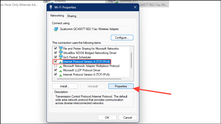 - Click on the Internet Protocol Version 4 (TCP/IPv4) option, and then on the 'Properties' button.