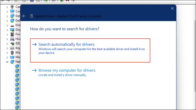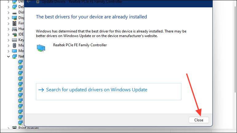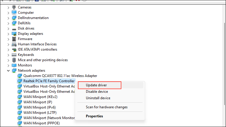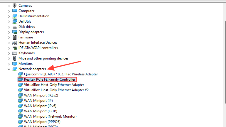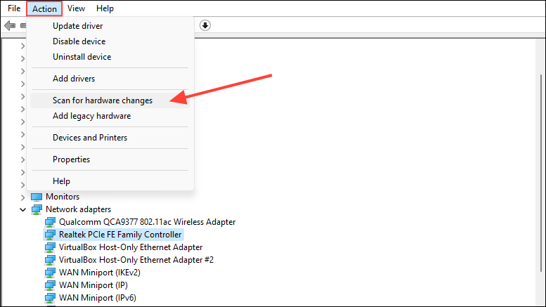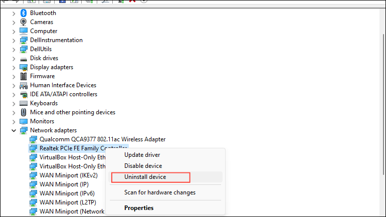 If updating the device driver does not work, another option is to reinstall the network adapter using the Device Manager.