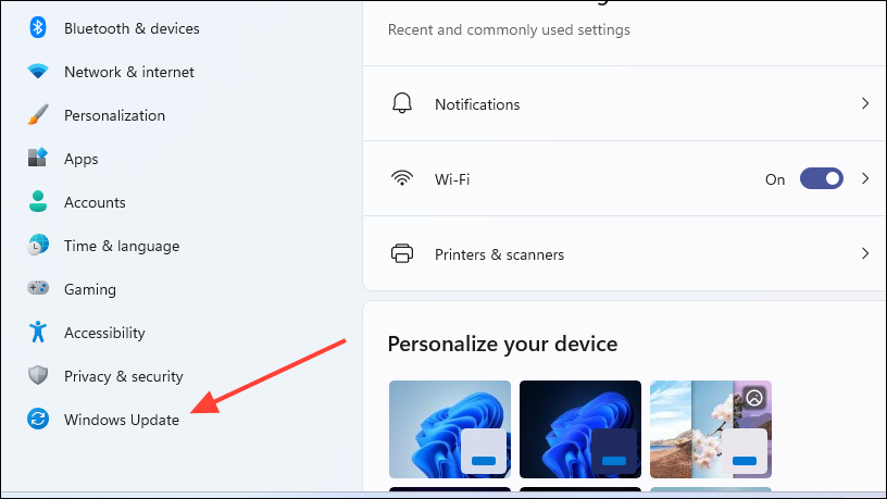- Open the Settings app and click on the 'Windows Update' option on the left.