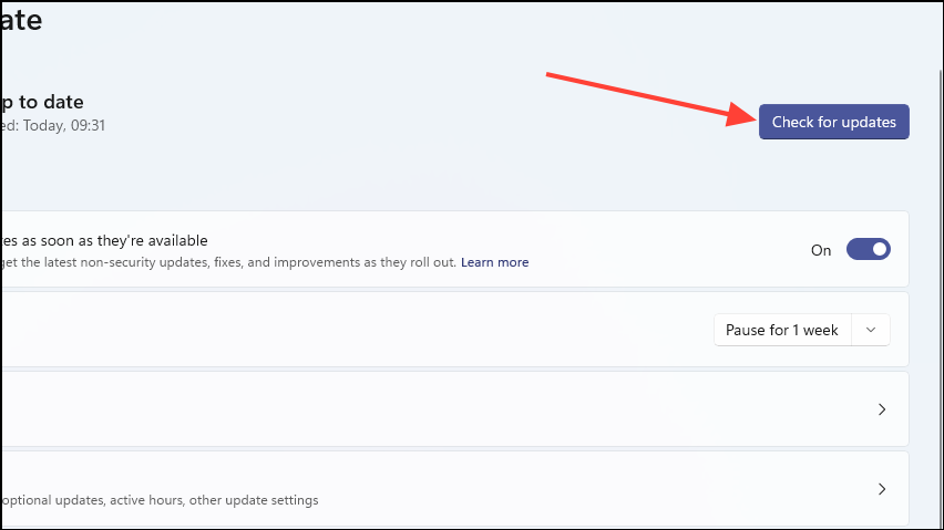 - On the Windows Update page, click on the 'Check For Updates' button. If updates are available, Windows will download and install them.
