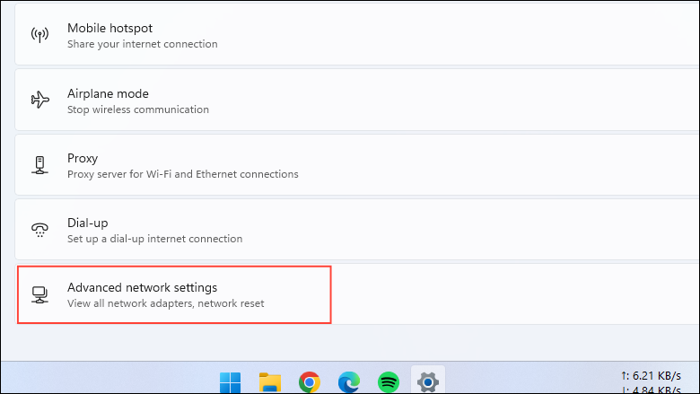 - On the 'Network and Internet' page, scroll down to the bottom and click on the 'Advanced Network Settings' option.