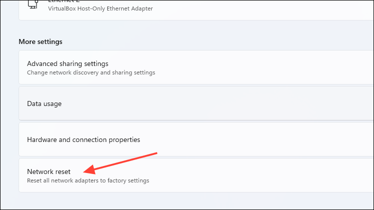 - On the next page, click on the 'Network Reset' option in the 'More Settings' section.
