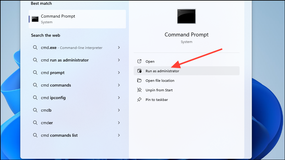 - When it appears, click on the 'Run As Administrator' option on the right.