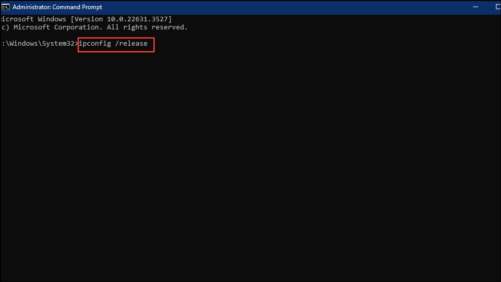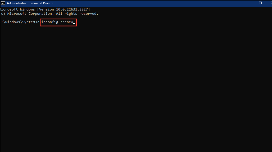 ipconfig /renewand press the 'Enter' key again. Once you're done, close the command prompt window and try to connect to the internet again.