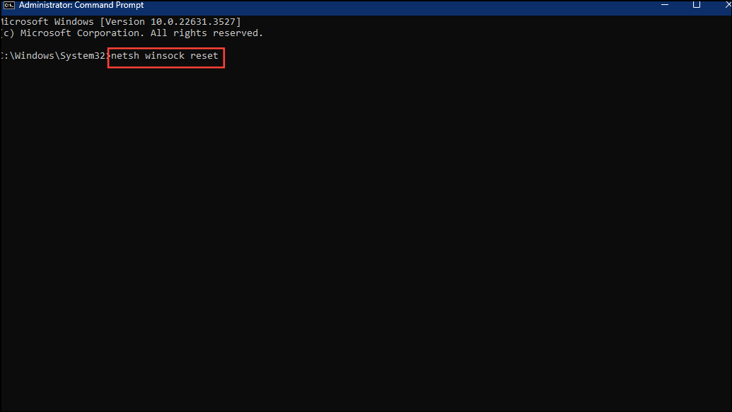 ipconfig /flushdns in the command prompt window. This is a small step you can perform without any extra effort and may help you resolve the error. Reset Winsock