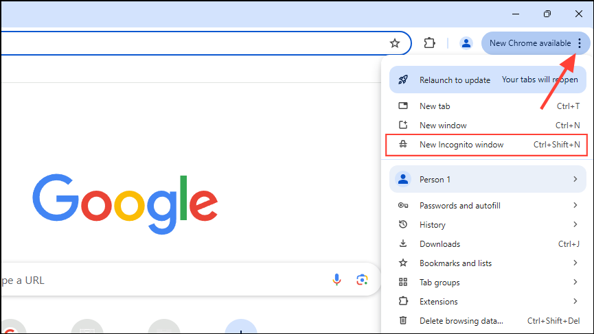 - Open Chrome and click on the three dots on the top right.