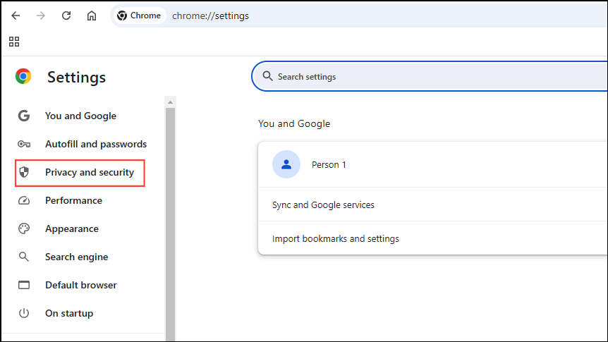 - Next, click on 'Privacy and security' on the left.