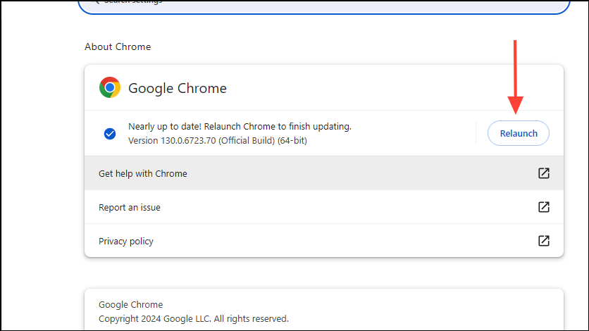 - Chrome will automatically check for updates and install them if they are available. You can then click on the 'Relaunch' button before opening the Spotify website again.