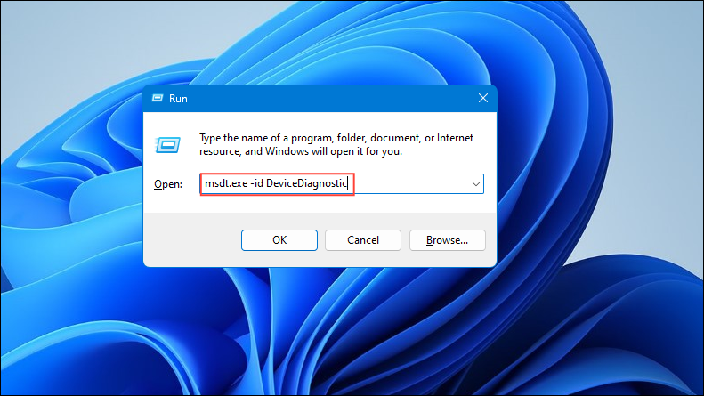 Win + Rshortcut and typemsdt.exe -id DeviceDiagnosticbefore pressing Enter.