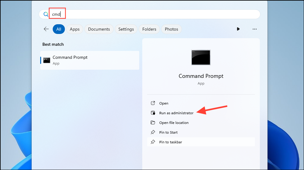 cmdand click on 'Run as administrator'.