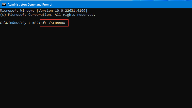 sfc /scannowbefore pressing Enter.