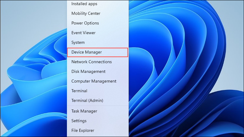 - Right-click on the Start button and click on 'Device Manager'.