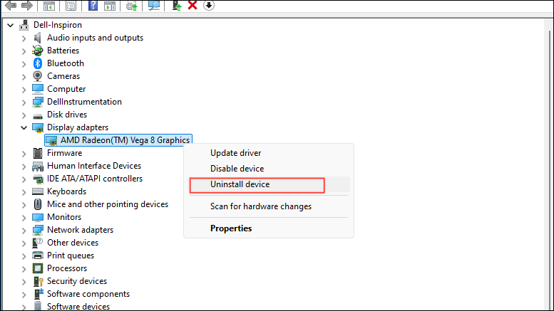 - Right-click on the graphics driver and click on 'Uninstall device'.
