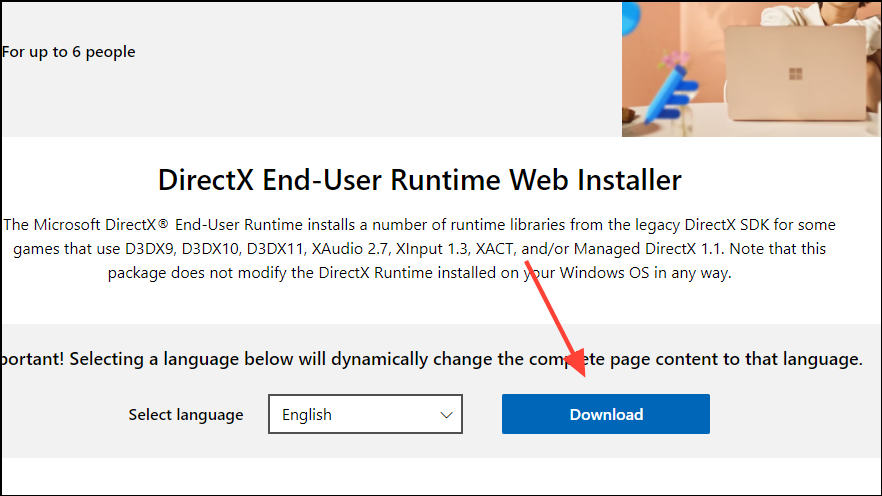 - Visit Microsoft's DirectX webpage and click on the 'Download' button to download the DirectX installer.