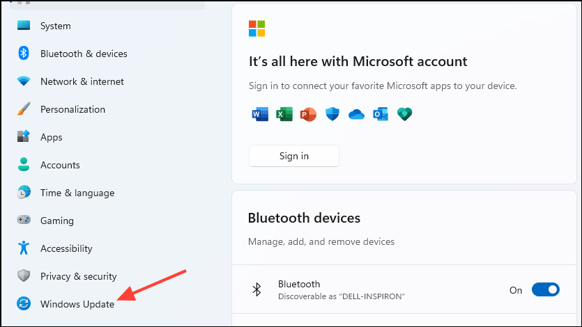 Win + Ishortcut and click on 'Windows Update' on the left.