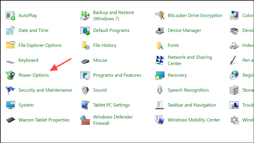- Open the Control Panel and click on 'Power Options'.
