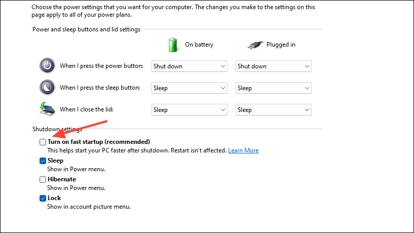 Solution 6: Turn off Fast Startup