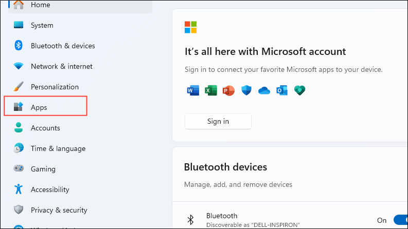 - Open the Settings app and click on 'Apps' on the left.