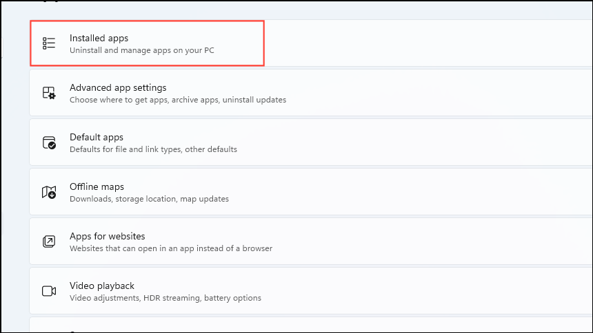 - Next, click on 'Installed apps' at the top.