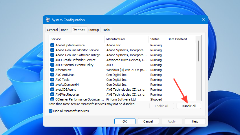 A clean boot disables all third-party services while keeping only the services required for the proper functioning of the PC active. It can help you determine whether any third-party application is causing the BSOD error.