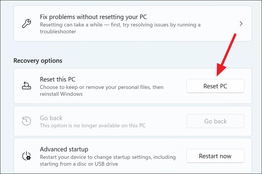 Step 3: Under Reset this PC, click on Reset PC.