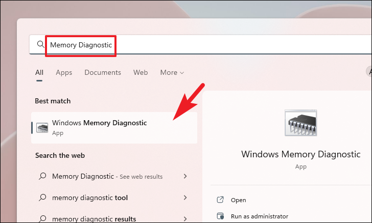Step 1: Open the Start Menu, type Windows Memory Diagnostic, and select the application from the search results.