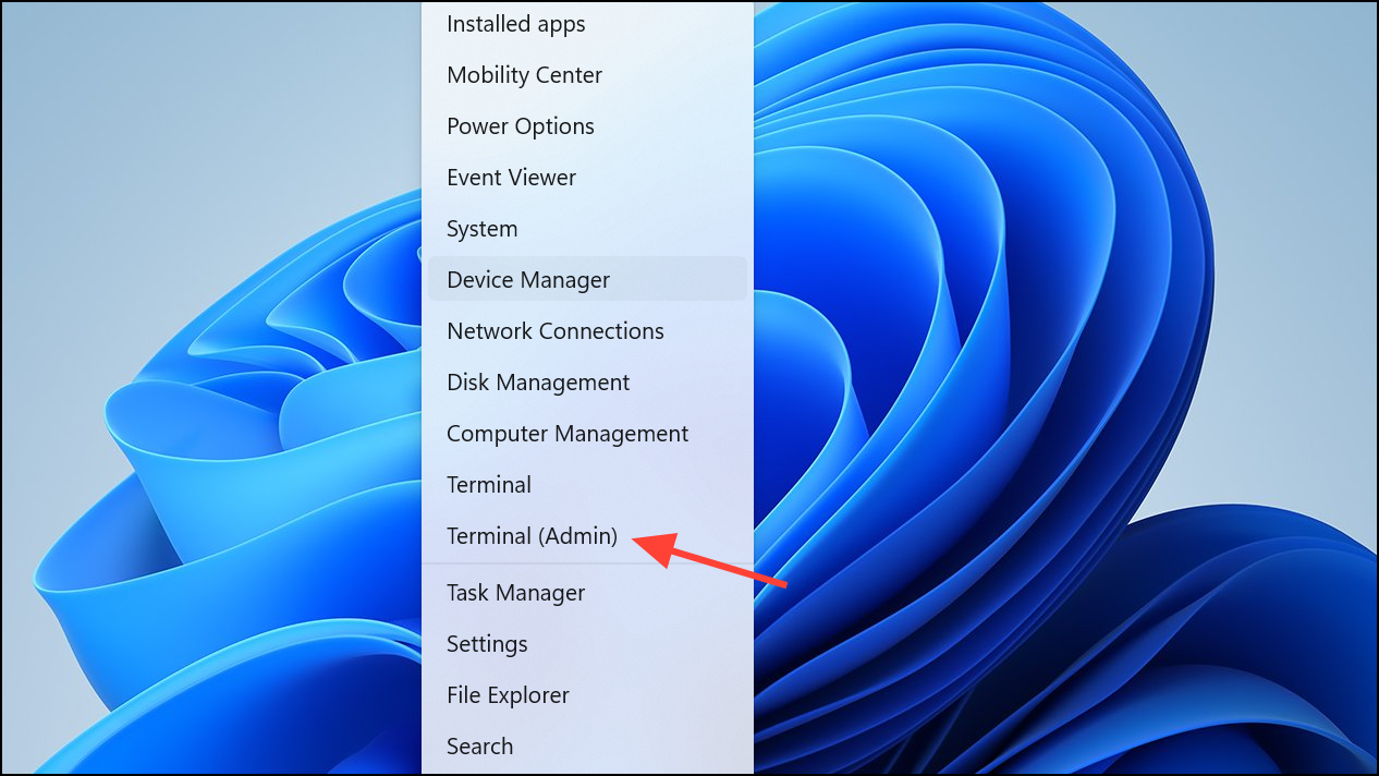 Step 1: Open Command Prompt as Administrator by pressing Win + X and choosing Command Prompt (Admin) or Windows Terminal (Admin).