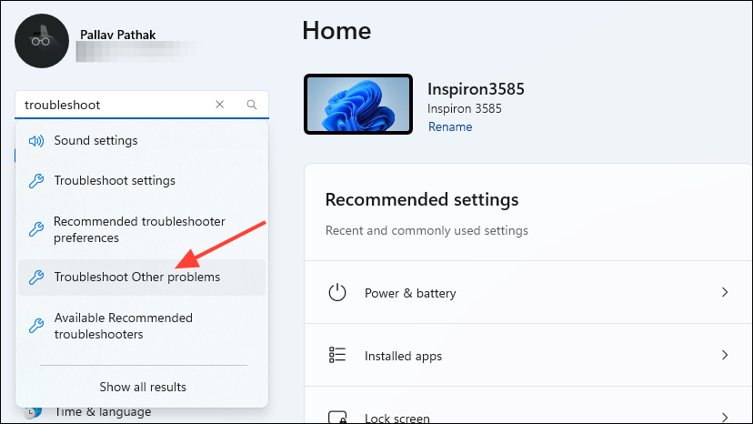 - Click on 'Troubleshoot Other Problems' from the list of options that appear.