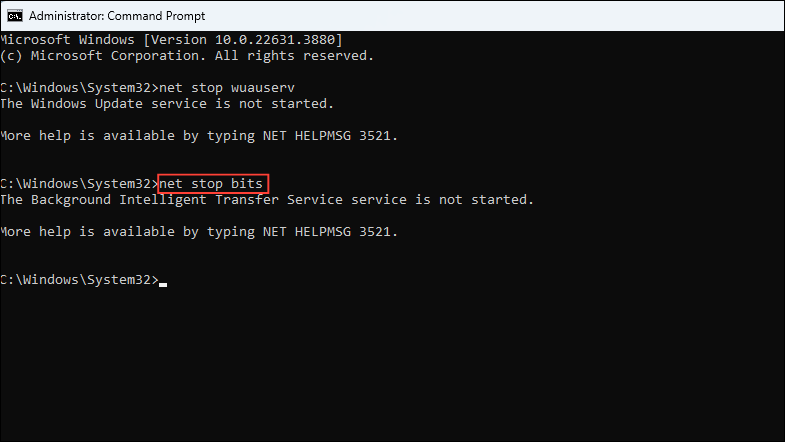net stop bitsand press Enter again.