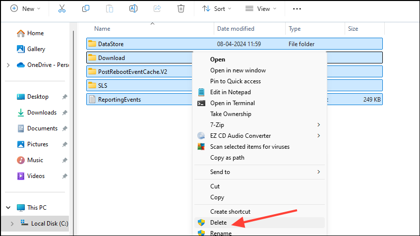 Fix 7: Delete the Windows Update Store folder