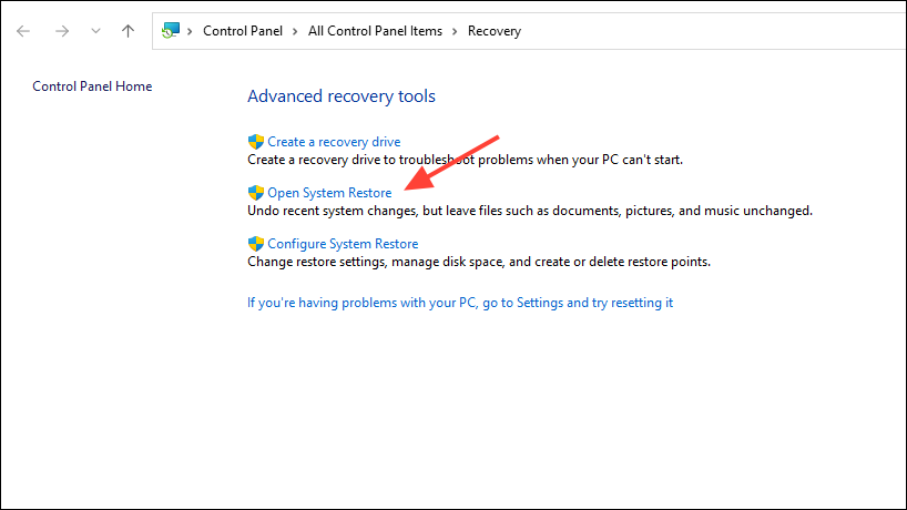 - You can also try restoring your system to an earlier time if you have a restore point available.